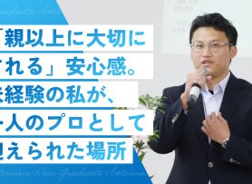 など、個性的なキャッチフレーズとともに自身の若い時の話や、仕事に対する価値観、内定者の皆さんへのアドバイスなども満載で自己紹介が進みます。