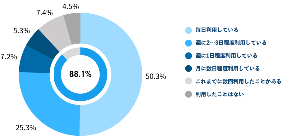 アンケートの結果、社員の9割近くが継続的に生成AIを業務で活用していることがわかりました。