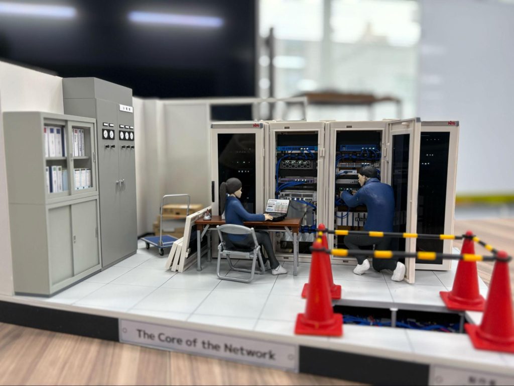 複数のモニターや、専門書が並ぶライブラリー、そして実際に稼働しているサーバー。先ほどジオラマで見たものが、現実のインフラとして「動いている」光景を、一つひとつ確かめるように見学していました。
