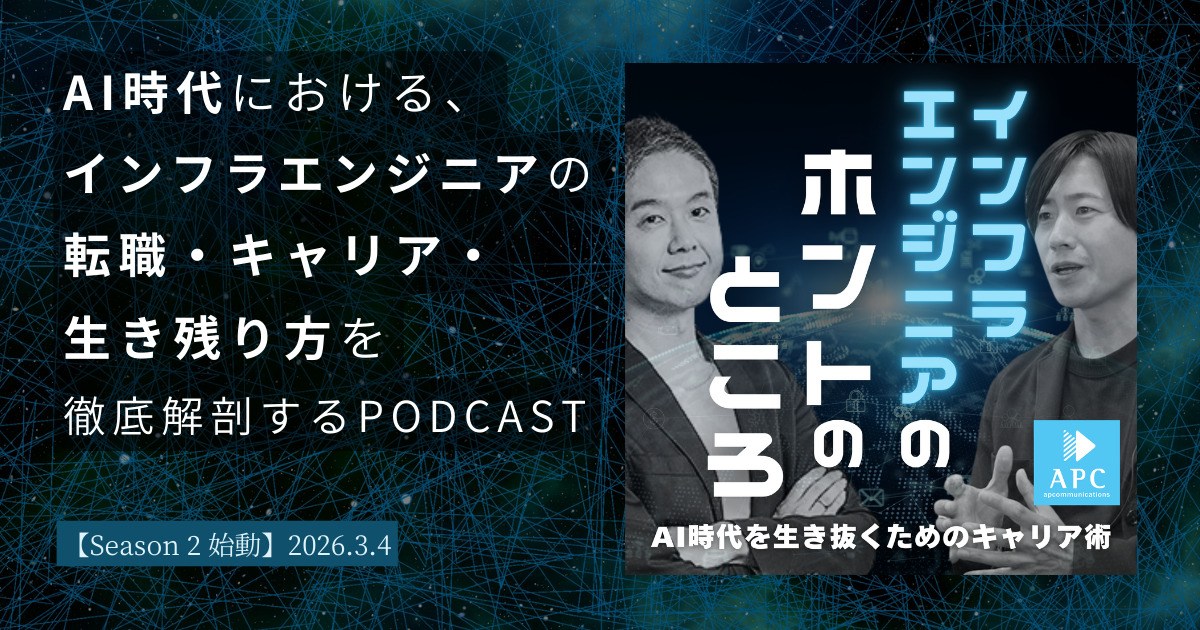 2025年末に一旦幕を閉じた、エーピーコミュニケーションズ(APC)がお届けするPodcast番組『インフラエンジニアのホントのところ』が、本日2026年3月4日より、パワーアップして帰ってきました!