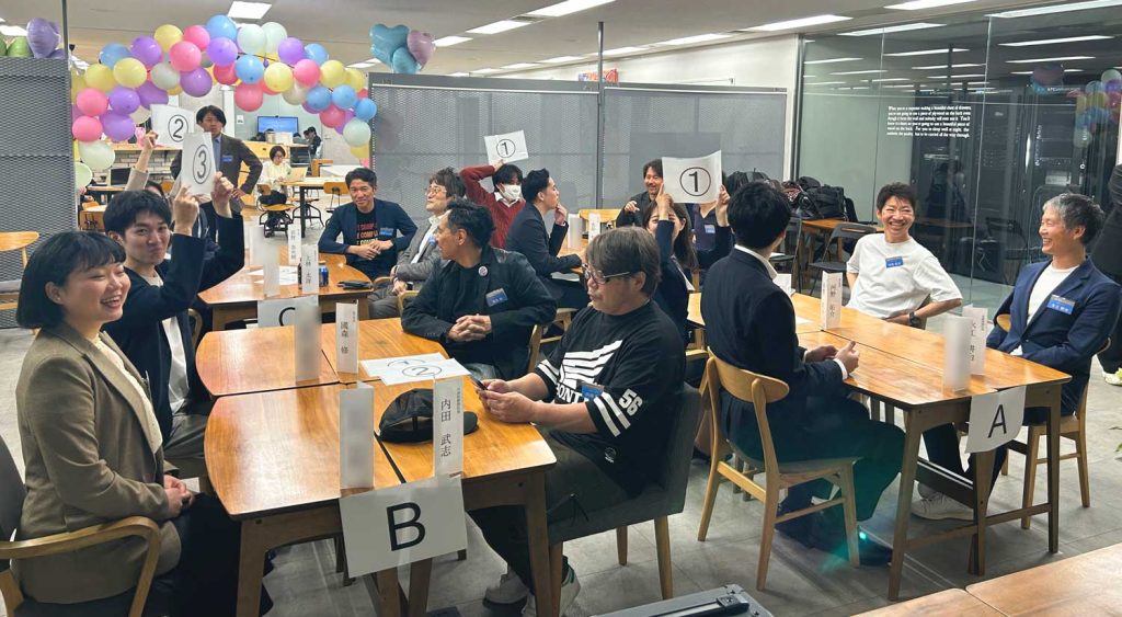 同じチームになった役員と新卒メンバーが、これまでの面談や当日の印象を頼りに、作戦会議さながらに真剣に予想。 世代や役職を超えて盛り上がりました。