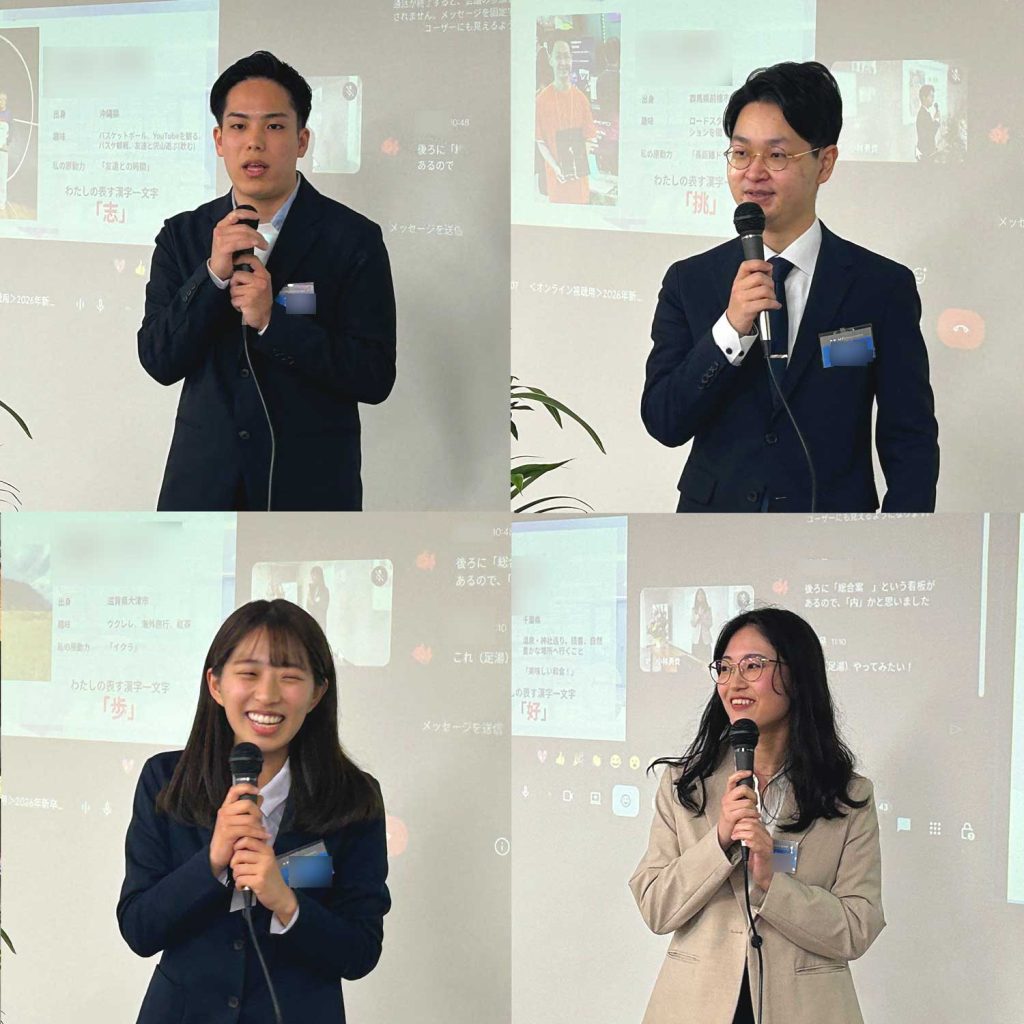 8名がそれぞれの言葉で決意を語るたび、会場からは拍手が起こり、オンライン参加の社員たちからも画面いっぱいの温かなスタンプが送られていました。