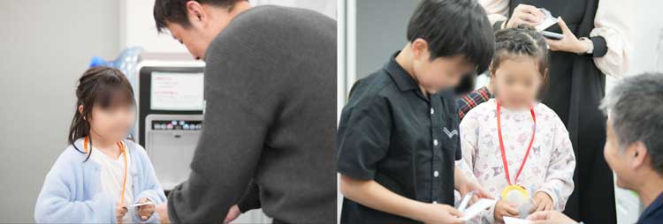 用意されたのは、APCの社員アーティスト・佐々木卓也さんが、お子さんたちのために描き下ろした世界に一つだけのオリジナル名刺。