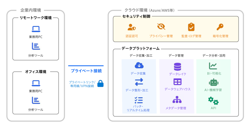 こうした背景を踏まえ、当社ではこれまで複数の企業に対して行ってきたプライベート接続構成の実績をもとに、セキュリティを担保しながらデータ活用を進められる専用ネットワーク型のデータ基盤構築を体系化し、新たな支援サービスとして提供を開始しました。